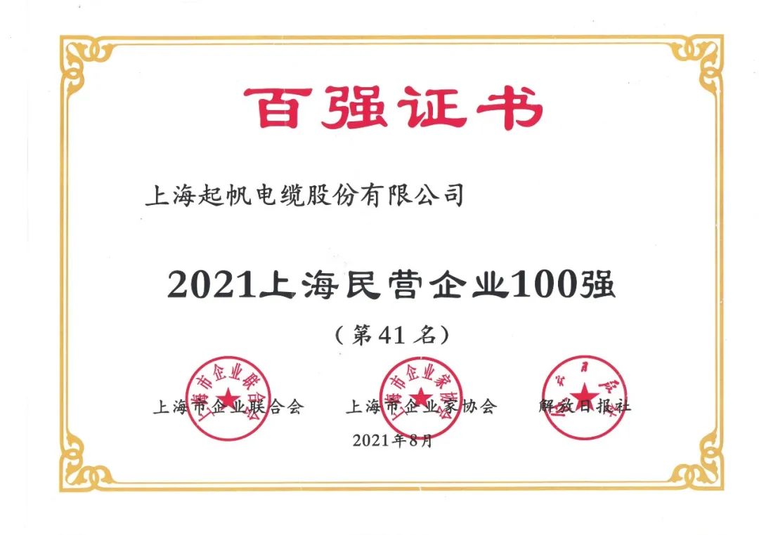 2021上海企业百强名单出炉,起帆电缆继续前进
